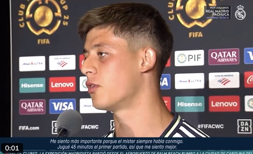 Arda Güler s'est exprimé en zone mixte avant le match de dimanche entre le Real Madrid et Pachuca.