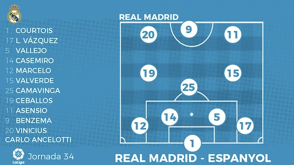 Pour cette rencontre, on s'attend naturellement à ce que Carlo Ancelotti fasse tourner un minimum en sachant qu'il devra bricoler derrière. Ses trois défenseurs centraux sont en effet indisponibles (Alaba, Militao, Nacho) ce qui offrira à Vallejo une occasion en or de se montrer. Si Gila a été appelé, c'est bien Casemiro, de retour dans le groupe, qui devrait accompagner l'Espagnol. Sur les côtés, on devrait rafraîchir tout ça avec un Marcelo qui deviendra, en cas de nul ou victoire, le joueur le plus titré de l'histoire du club.